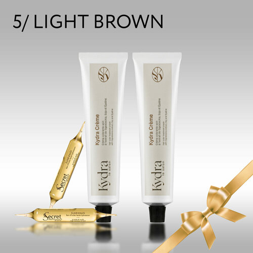 KYDRA Набор: Краска 5/ LIGHT BROWN Kydracreme 2 шт, Ампулы в ассортименте 2 ампулы по 10мл, Подарок