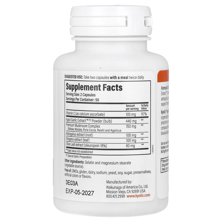 Экстракт выдержанного чеснока от компании Kyolic начинается с 100 % органически† выращенных луковиц чеснока. Затем они выдерживаются до совершенства в уникальном процессе экстракции для уничтожения запаха и создания полезных соединений, которые встречаются только у Kyolic. Это сочетание витаминов, грибов и трав помогает поддерживать здоровый иммунитет.