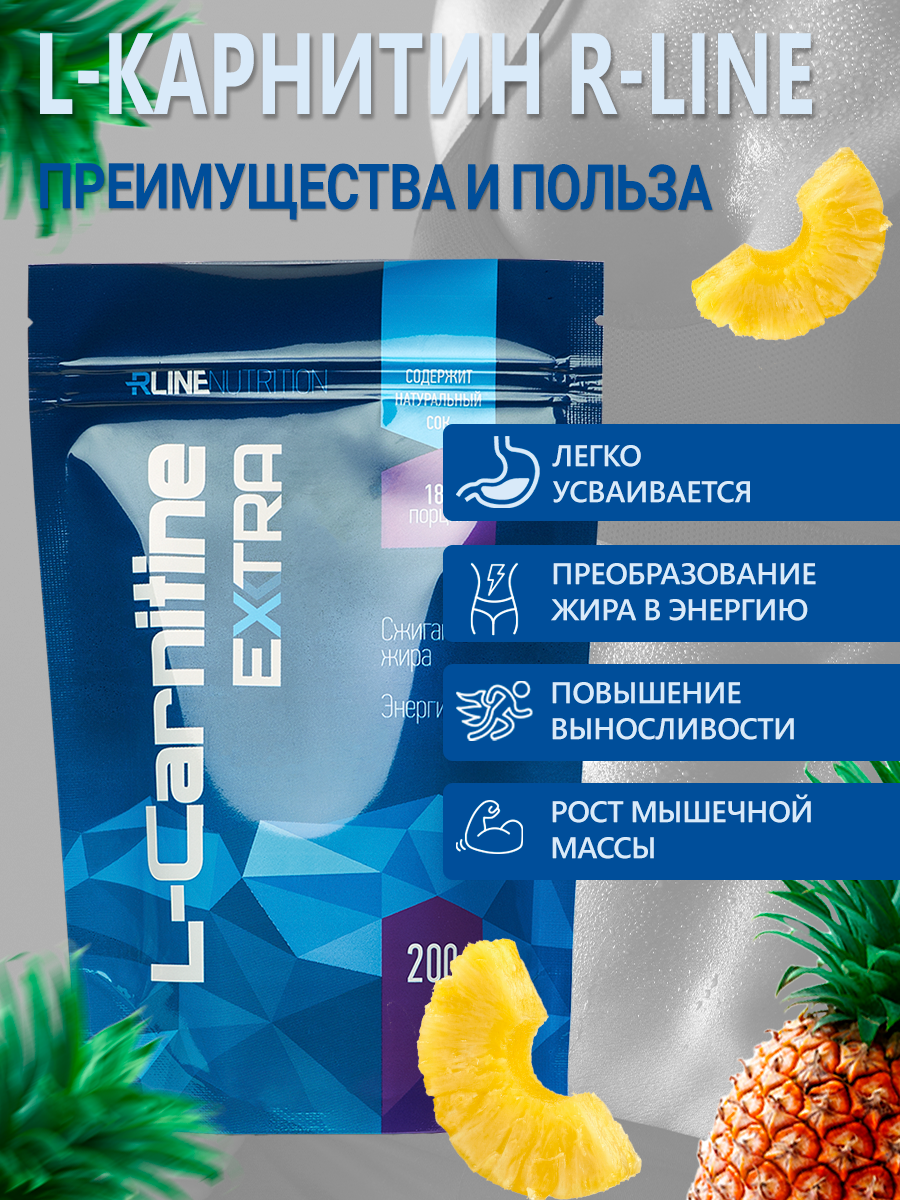 L-Карнитин Extra / Ананас / L-Carnitine R-line, жиросжигатель для похудения: сравнение цен, характеристики, фото, актуальное наличие и цены.