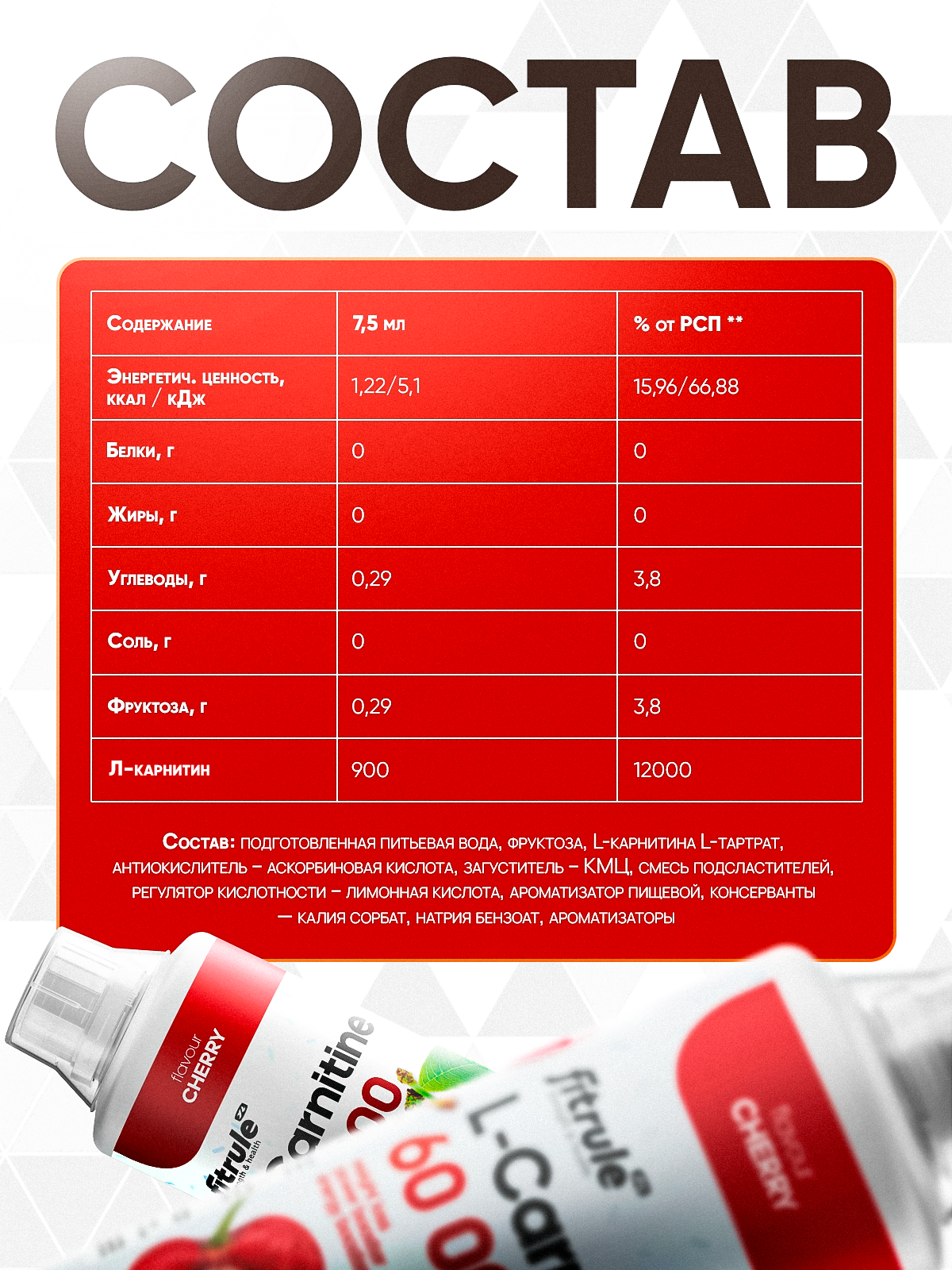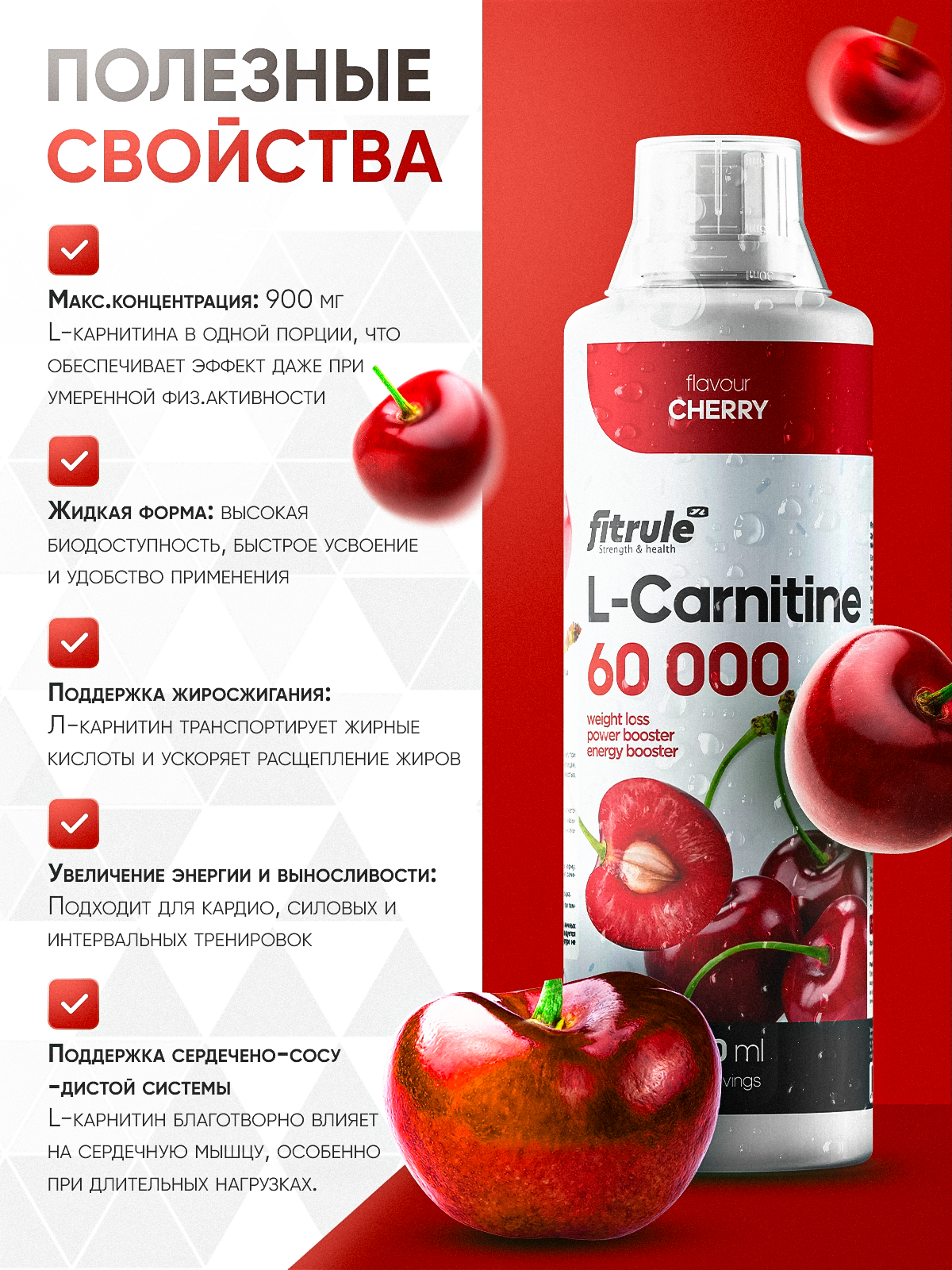 Fitrule L-Carnitine 60000 Concentrate 500ml, Вишня: сравнение цен, характеристики, фото, актуальное наличие и цены.