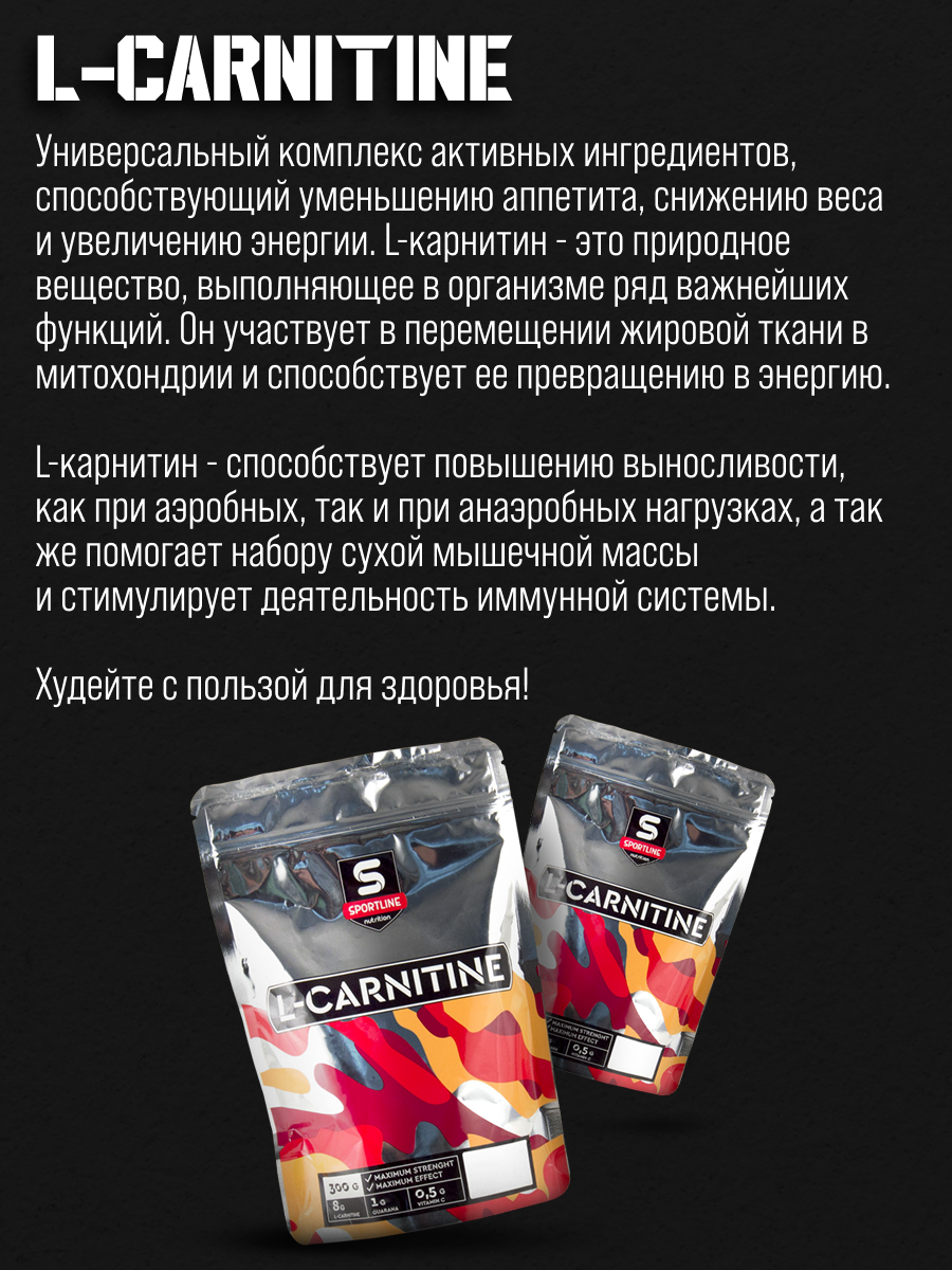 Купить L- карнитин SportLine L-Carnitine, кола, 300 гр. + гуарана и витамин С с доставкой по всей России. L- карнитин SportLine L-Carnitine, кола, 300 гр. + гуарана и витамин С: сравнение цен, характеристики, фото, актуальное наличие и цены.