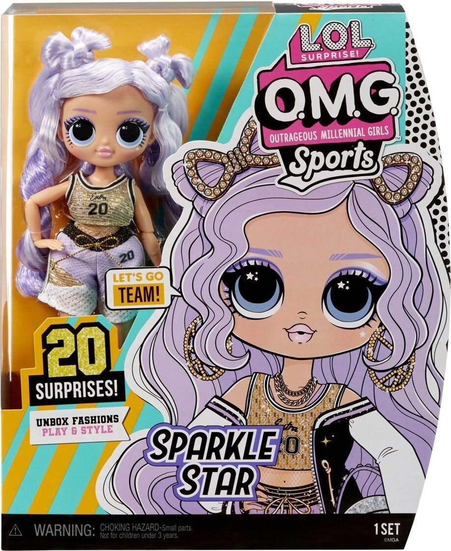 Кукла LOL OMG Sparkle Star Баскетболистка - одна из представительниц крутой спортивной серии кукол OMG Sports. Серия - это две спортивные и гламурные девчонки. Вторая спортивная куколка - Теннисистка Court Cutie. У куколки-баскетболистки Sparkle Star длинные волнистые волосы фиолетового цвета. Макияж девочки также выдержан в этих тонах. Высота куколки - 25 см, у нее подвижные ручки и ножки, что позволяет ей принимать разные положения.