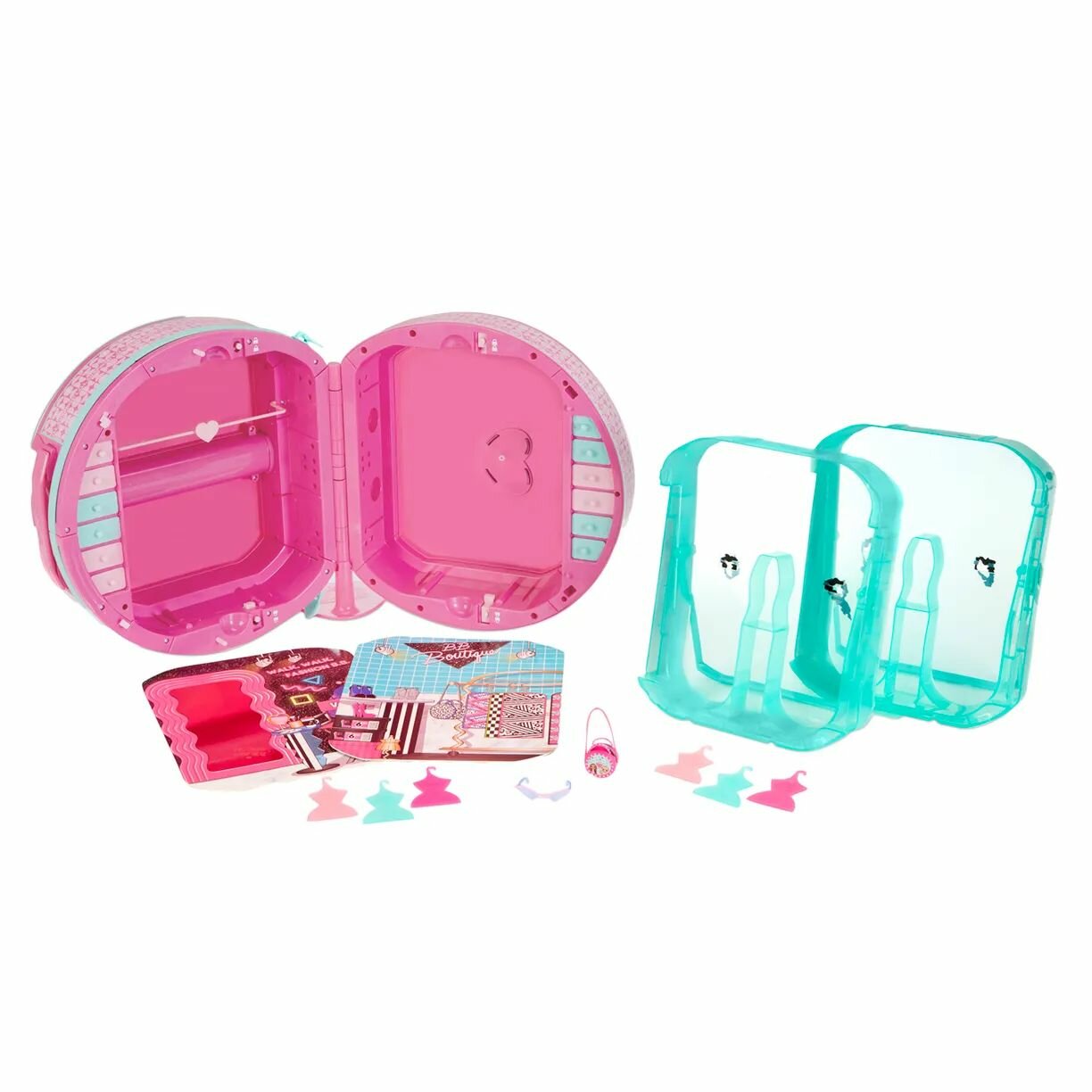 - Эксклюзивные аксессуары: сумочка, солнцезащитные очки и 6 вешалок для костюмов кукол.