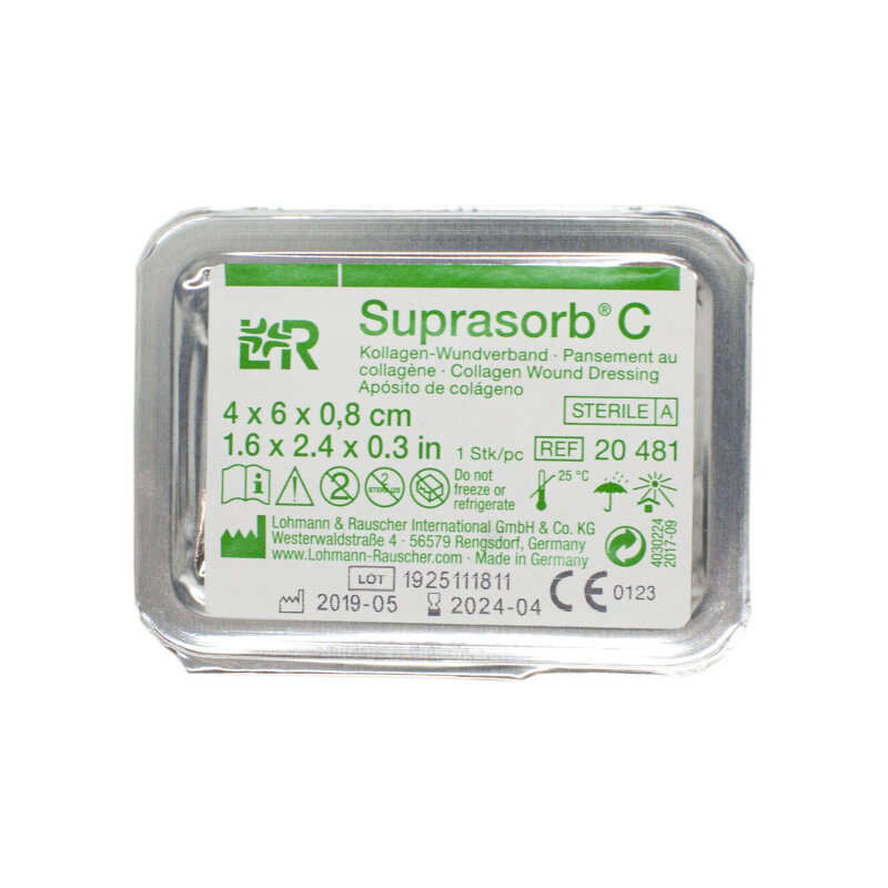 Suprasorb C / Супрасорб Ц — коллагеновая впитывающая повязка для поверхностных ран, 4×6 см: сравнение цен, характеристики, фото, актуальное наличие и цены.