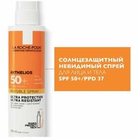 Антгелиос Невидимый спрей для лица и тела SPF 50+ с легкой текстурой, устойчивой к воздействию воды, песка и пота. Однородная, нежирная и нелипкая текстура.