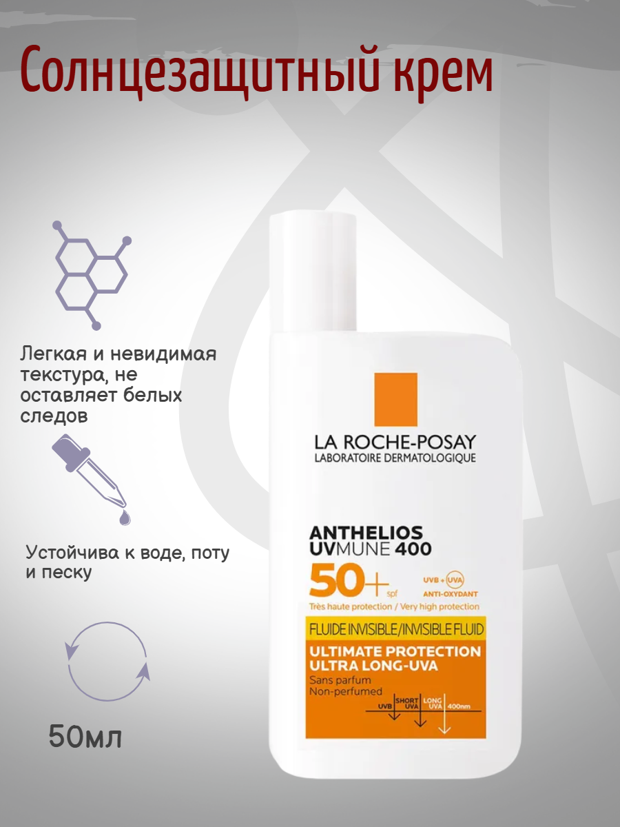 La Roche-Posay SPF 50+ Невидимый солнцезащитный крем-флюид для лица и кожи вокруг глаз, 50мл: сравнение цен, характеристики, фото, актуальное наличие и цены.
