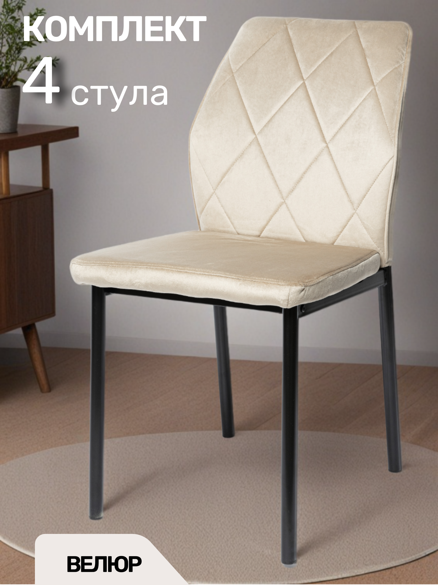 La Room Стул для кухни 4 шт. DC-5001, бежевый, велюр, школьный, офисный, для гостиной: сравнение цен, характеристики, фото, актуальное наличие и цены.