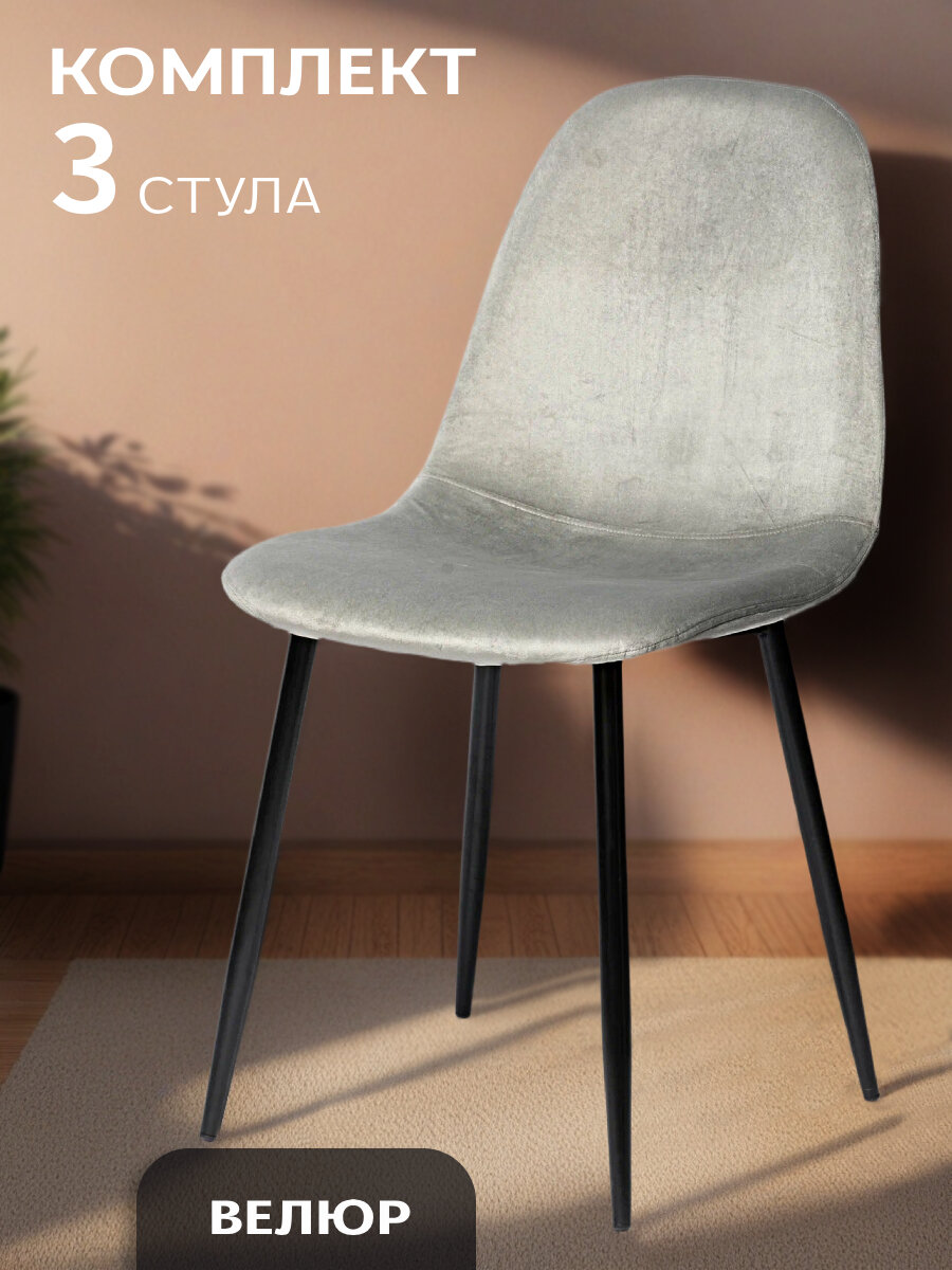 Купить La Room, Стулья для кухни, 3 шт, DC-5541, серый велюр, для школы, для офиса с доставкой по всей России.