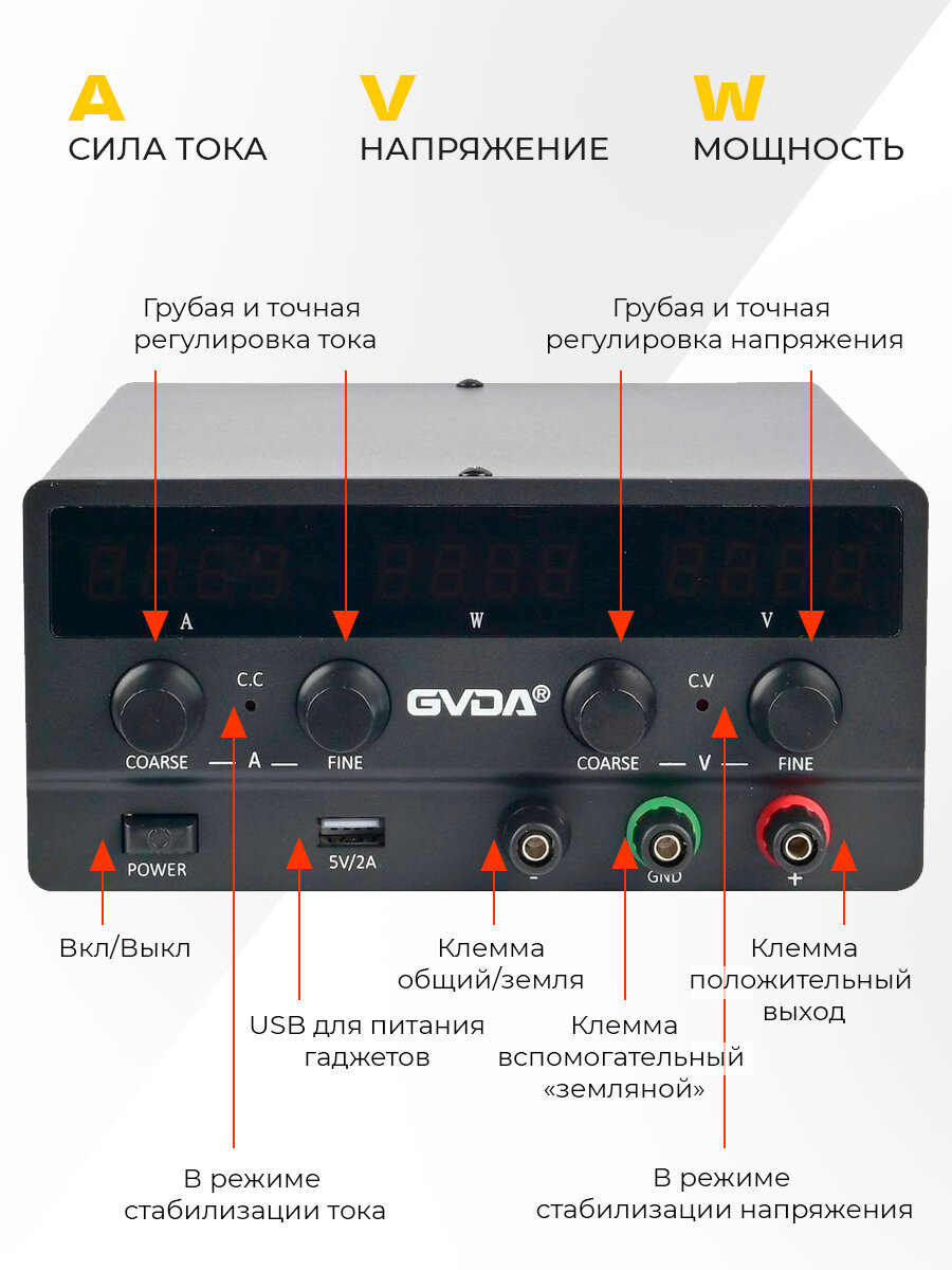 Блок питания GVDA A3010, лабораторный, 30В, 10А, цифровой, чёрный
