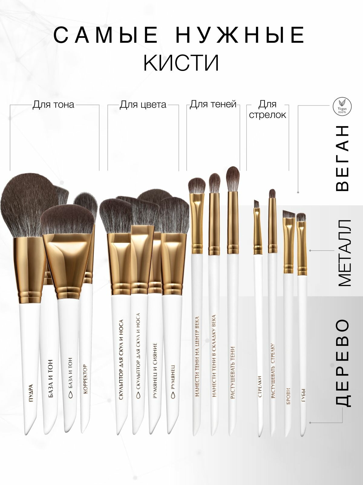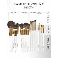 Создавайте эффект сияющей кожи или матовый перекрывающий финиш, острые скулы, графичные стрелки или цветные растушевки. Все кисти разработаны для разных текстур косметики и усиливают друг друга в нанесении без эффекта маски.
