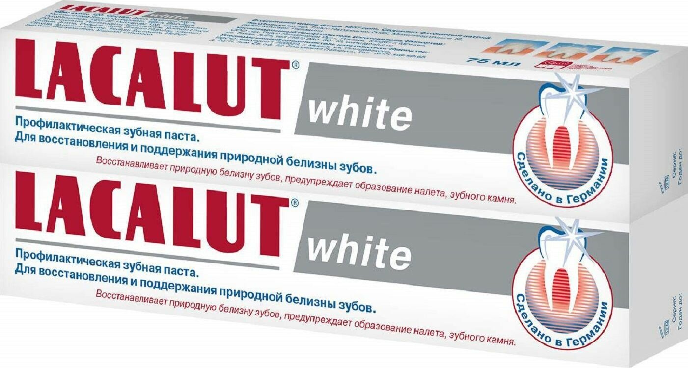 Купить Lacalut Зубная паста White отбеливающая, 75 мл, 2 шт с доставкой по всей России. Lacalut Зубная паста White отбеливающая, 75 мл, 2 шт: сравнение цен, характеристики, фото, актуальное наличие и цены.