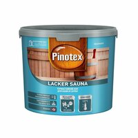 Термостойкий лак для бани и сауны PINOTEX LACKER SAUNA 20 (на водной основе; для внутренних работ; полуматовый; предназначен для деревянных стен и потолков, подверженных постоянному воздействию высоких температур и повышенной влажности. Выдерживает до 120°С, не выделяет вредных веществ при нагревании. Не желтеет, сохраняет естественный цвет древесины. Pinotex Lacker Sauna образует прозрачное эластичное покрытие, защищает деревянные поверхности от влаги, пара и грязи. Не растрескивается при перепадах температур и влажности. Лак удобен в использовании, легко разравнивается и не оставляет потеков, следов от инструмента при нанесении. Быстро высыхает, лакировку можно завершить за один день. Обладает экономичным расходом.