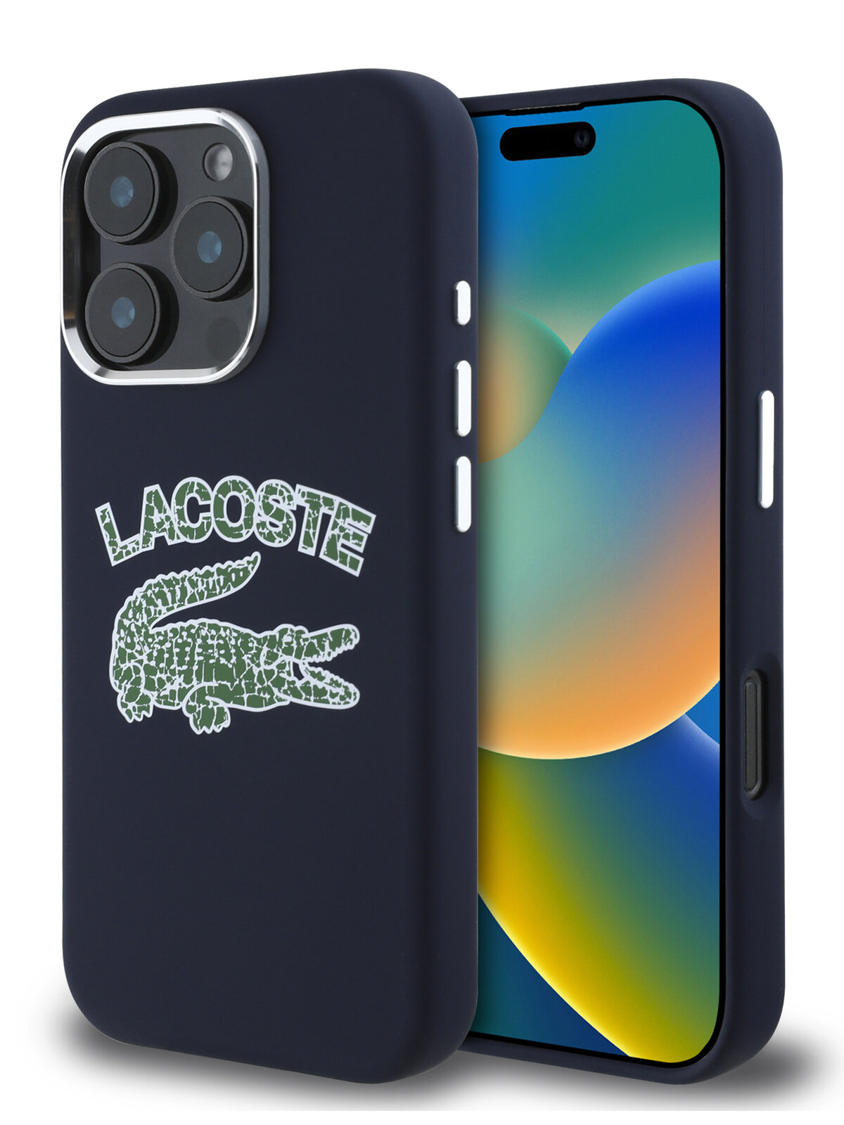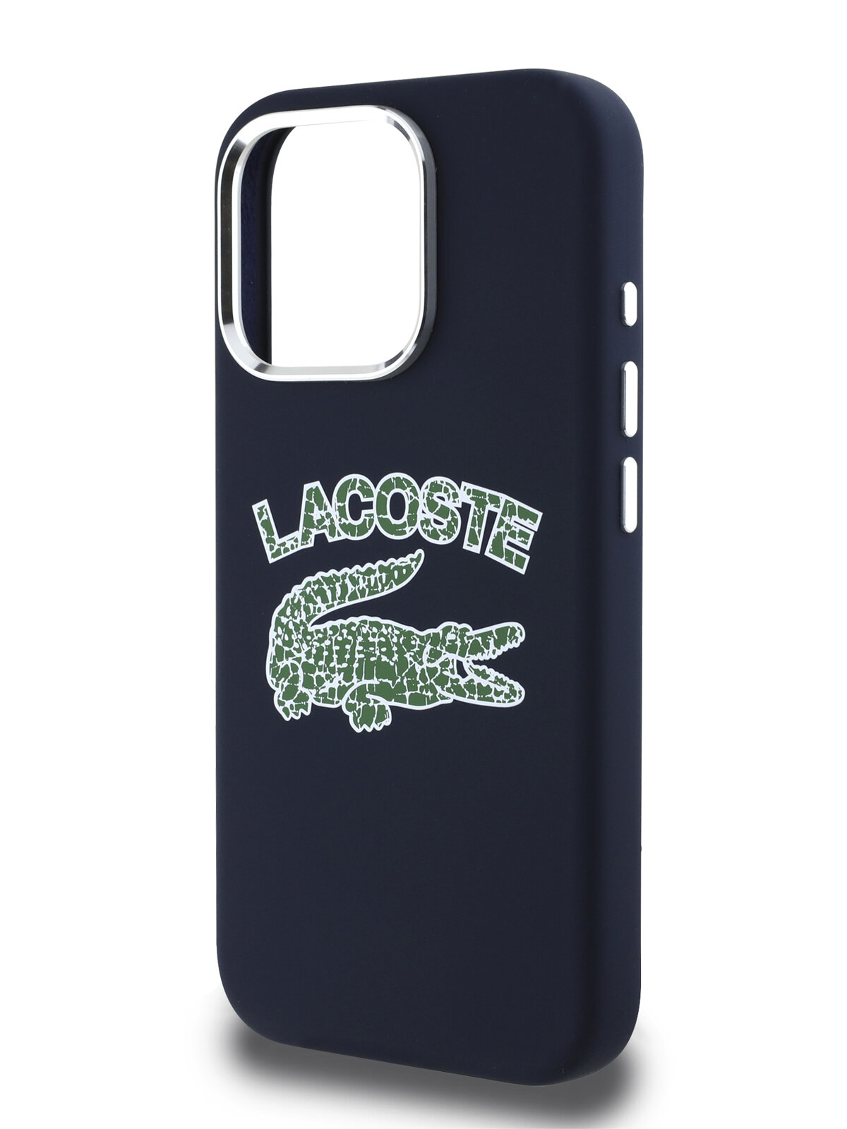 Купить Lacoste для iPhone 16 Pro Max чехол Liquid silicone Cracked Logo Metal Cam Hard Marine (MagSafe) с доставкой по всей России.