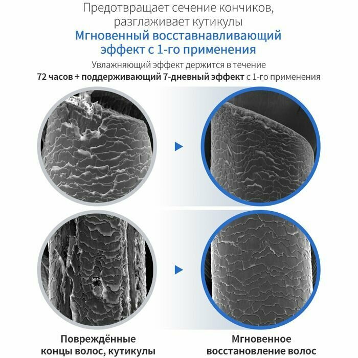 | Активный ингредиент | аллантоин, аминексил, аминокислоты, бетаин, витамин E, гиалуроновая кислота, гидролизованный шелк, глицерин, глицин, керамиды, кератин, коллаген, лимонная кислота, липиды, ментол, муцин улитки, ниацинамид, протеины, протеины шелка, салициловая кислота, цетримониум хлорид, цинк |