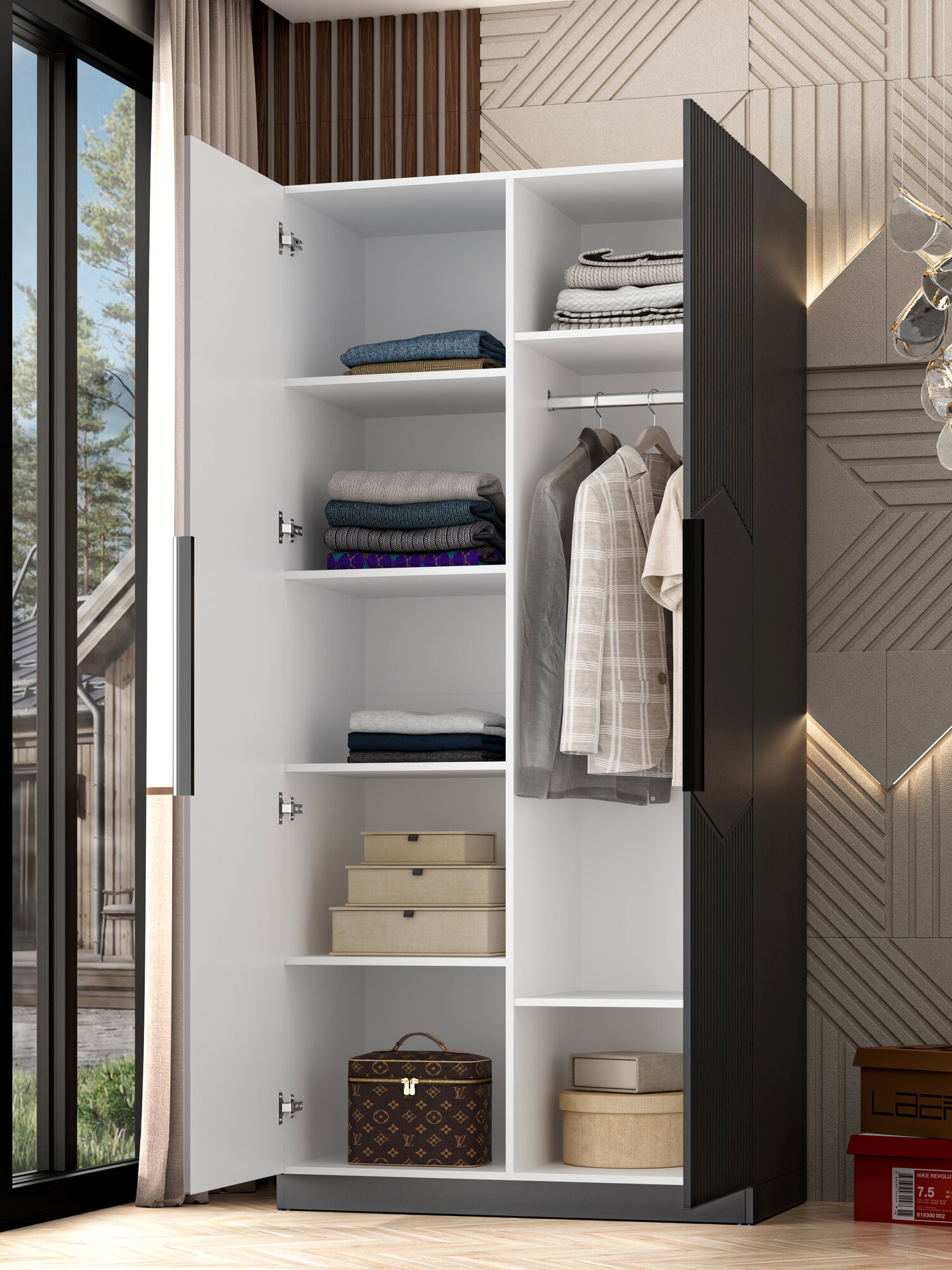 LAERA Шкаф для одежды двухдверный распашной с полками 90 см графит: сравнение цен, характеристики, фото, актуальное наличие и цены.