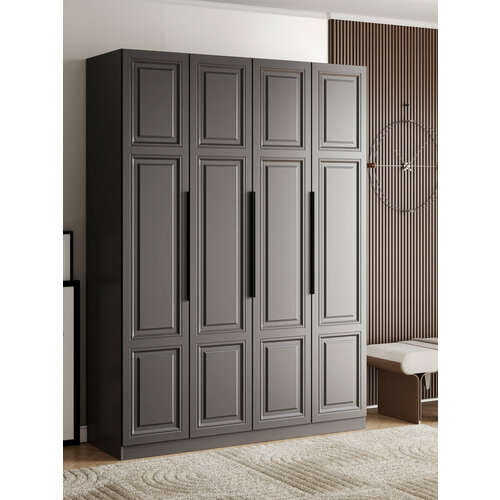 Купить LAERA Шкаф для одежды распашной четырехдверный с полками графит с доставкой по всей России.