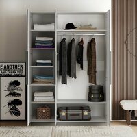 | Комплектация | Корпус шкафа и фасады: МДФ 16 мм в пленке ПВХ. Внутренние детали: ЛДСП 16 мм, цвет белый. Задняя стенка: ЛХДФ цвет белый 3 мм. Фурнитура: Петли накладные с доводчиком. Ручка-торцевая длиной 600 мм - 3 шт. Штанга овальная |