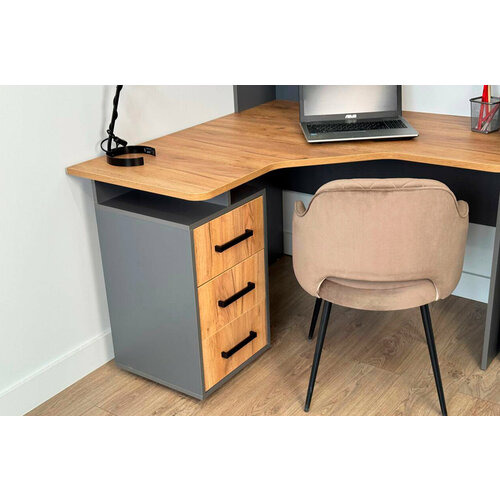 Стол компьютерный угловой "Лайт-2 " с ящиками, дуб крафт золотой/белый, 120*120*75 см, Mebelson