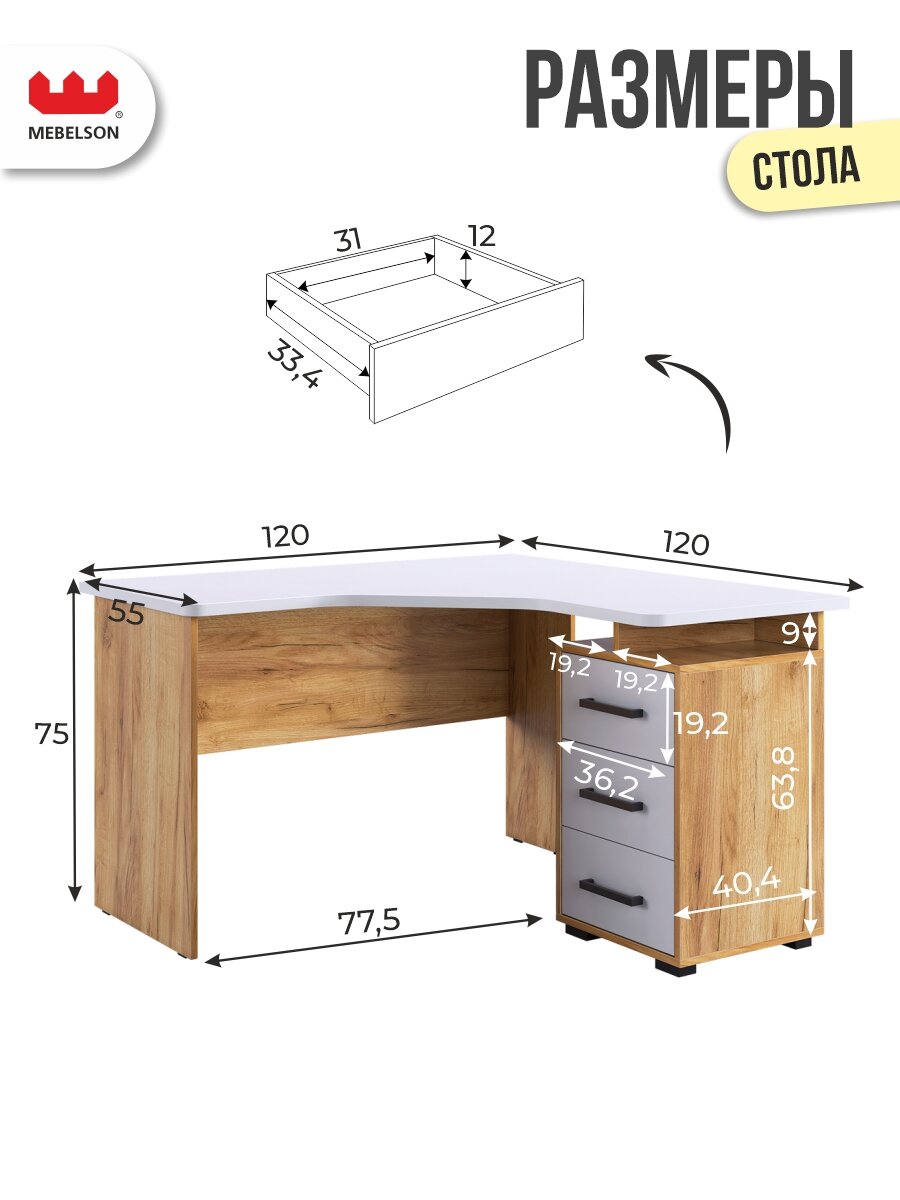 Купить Стол компьютерный угловой «Лайт-2 » с ящиками, дуб крафт золотой/белый, 120*120*75 см, Mebelson с доставкой по всей России. Стол компьютерный угловой «Лайт-2 » с ящиками, дуб крафт золотой/белый, 120*120*75 см, Mebelson: сравнение цен, характеристики, фото, актуальное наличие и цены.