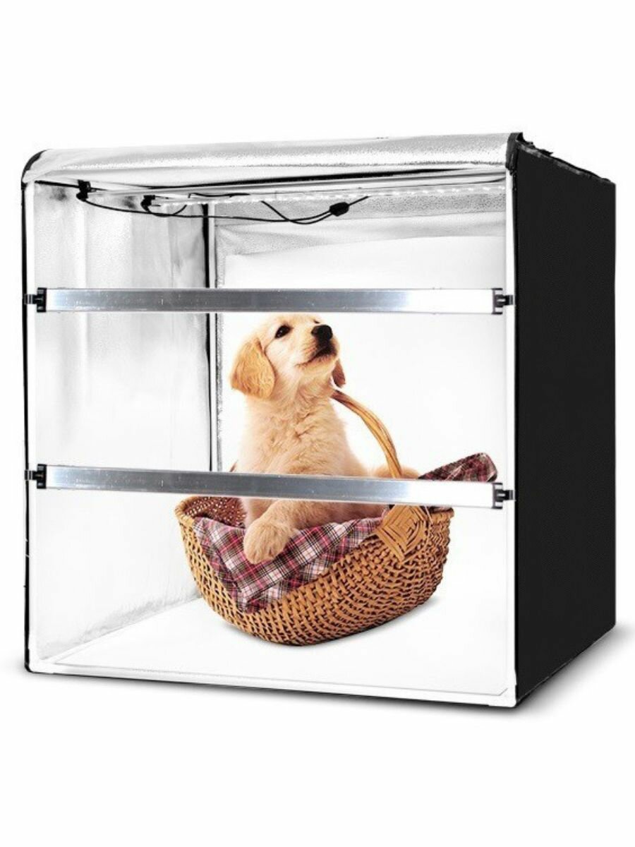 В светодиодных панелях, которые идут в комплекте есть возможность изменения мощности и цветовой температуры. Для этого надо установить нужный фон и подключить устройство к сети. Предмет устанавливается внутри лайтбокса. За счет яркого освещения, отражающих стенок устройства и сглаженных, незаметных переходов от вертикальных к горизонтальным поверхностям, создается нужный эффект обволакивающего света и отсутствия заднего плана. Ничто не отвлекает от изображаемого предмета, все внимание сосредоточено только на нем. Лайтбокс используется в профессиональной и любительской фотостудии. В комплект оборудования входит блок питания и светодиоды.
