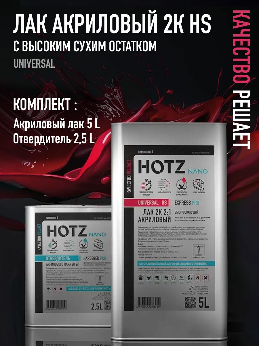 Двухкомпонентный UNIVERSAL акриловый премиальный лак HOTZ с высоким сухим остатком (HS) изготовлен по технологии конвейерных материалов. Испытан в экстремальных погодных условиях. Долговечен, надежно защищает от внешних воздействий.