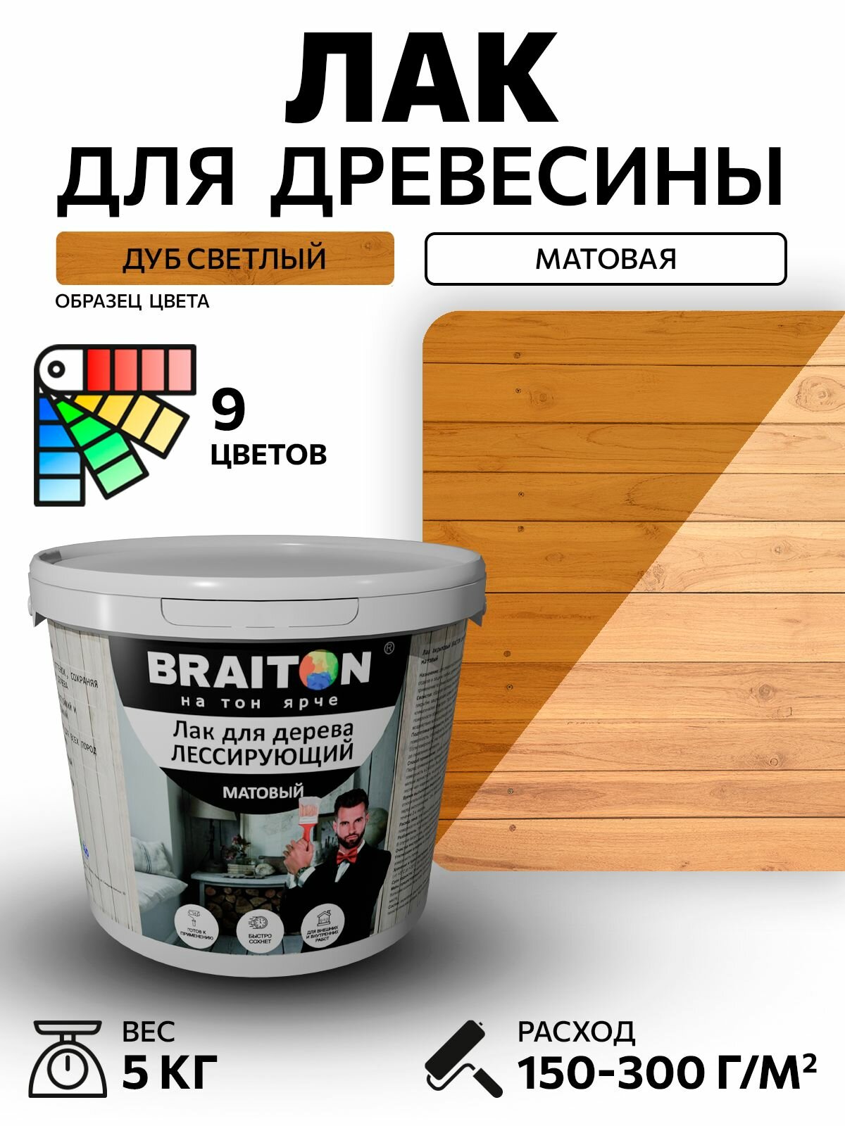 Лак акриловый Braiton для дерева лессирующий матовый 5 кг. Цвет Дуб светлый быстросохнущий без запаха, для кухонных фасадов, для дерева: сравнение цен, характеристики, фото, актуальное наличие и цены.