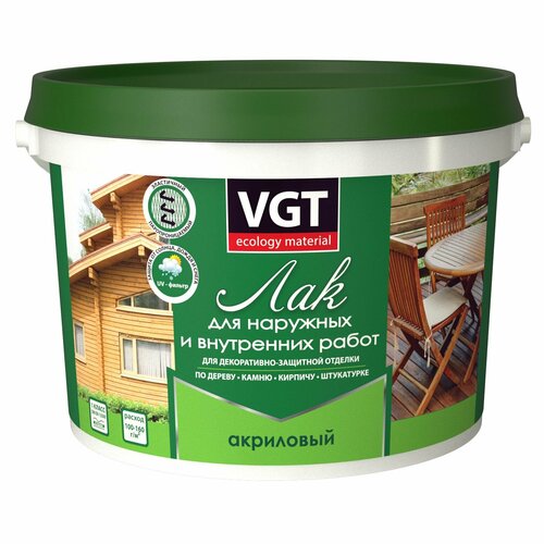 Лак акриловый для наружных и внутренних работ VGT бесцветный, глянцевый (9кг): сравнение цен, характеристики, фото, актуальное наличие и цены.