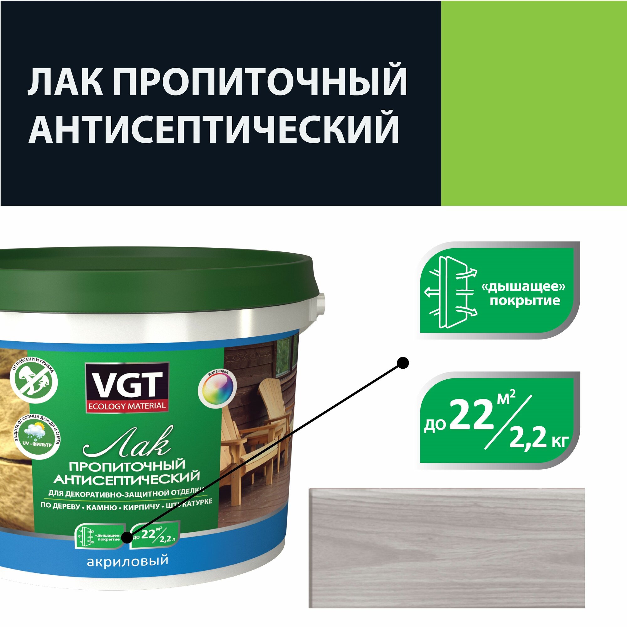 - лак антисептик ВГТ отлично пропускает пар, не позволяя влаге задерживаться в волокнах