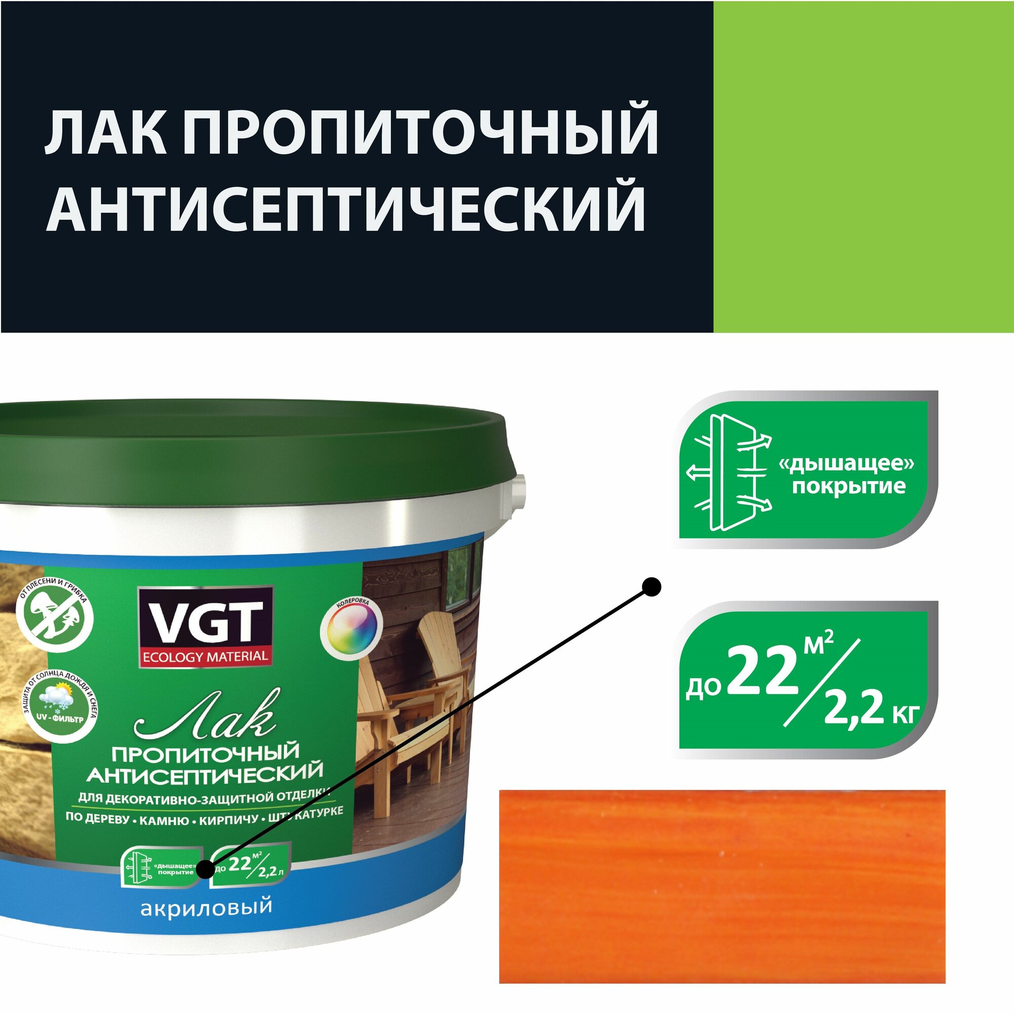 - лак антисептик ВГТ отлично пропускает пар, не позволяя влаге задерживаться в волокнах