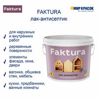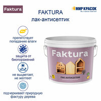 Лак-антисептик FAKTURA предназначен для декоративной отделки под ценные породы дерева и эффективной защиты деревянных поверхностей внутри и снаружи помещений, в том числе с повышенной влажностью (кухни, предбанники, ванные комнаты). Не требует предварительного грунтования, образует полноценное декоративное покрытие за один слой.