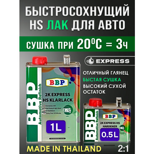 Авторемонтный прозрачный полиуретановый глянцевый лак с коротким временем сушки BBP HS BigBen (1л) в комплекте с отвердителем (0,5л) • наличие: 271 компл • код товара: 76591 • артикул: 421-8340+21-213 — — — — — — — — — — — — — Кузовной ремонт легковых и грузовых автомобилей по системе база/лак — — — — — — — — — — — — — • Высококачественный авторемонтный лак, разработанный для создания исключительно глубокого, зеркального глянца с превосходной поверхностной твердостью и повышенной устойчивостью к воздействию погодных и окружающих условий. • Разработан с учетом длительного периода жизнеспособности после смешивания для удобства нанесения, но при этом обеспечивает быстрое высыхание и ускоренное время отверждения, гарантируя эффективность и превосходство в процессе финишной обработки. • Идеально подходит для автомобильной ремонтной покраски, обеспечивая блестящее, долговечное и долговечное защитное покрытие, которое усиливает красоту и ценность каждого автомобиля. • Неприхотлив в использовании, можно применять в нестандартных для автосервисах условиях (вне камеры, при пониженных температурах), а так же и в хороших условиях в ОСК. • Обладает высоким блеском, быстрой сушкой, а так же повышенной прочностью. • Также хорошо подходит для различных задач, лакирование и восстановление пластиковых фар, фасадов мебели, рекламной продукции, декораций.