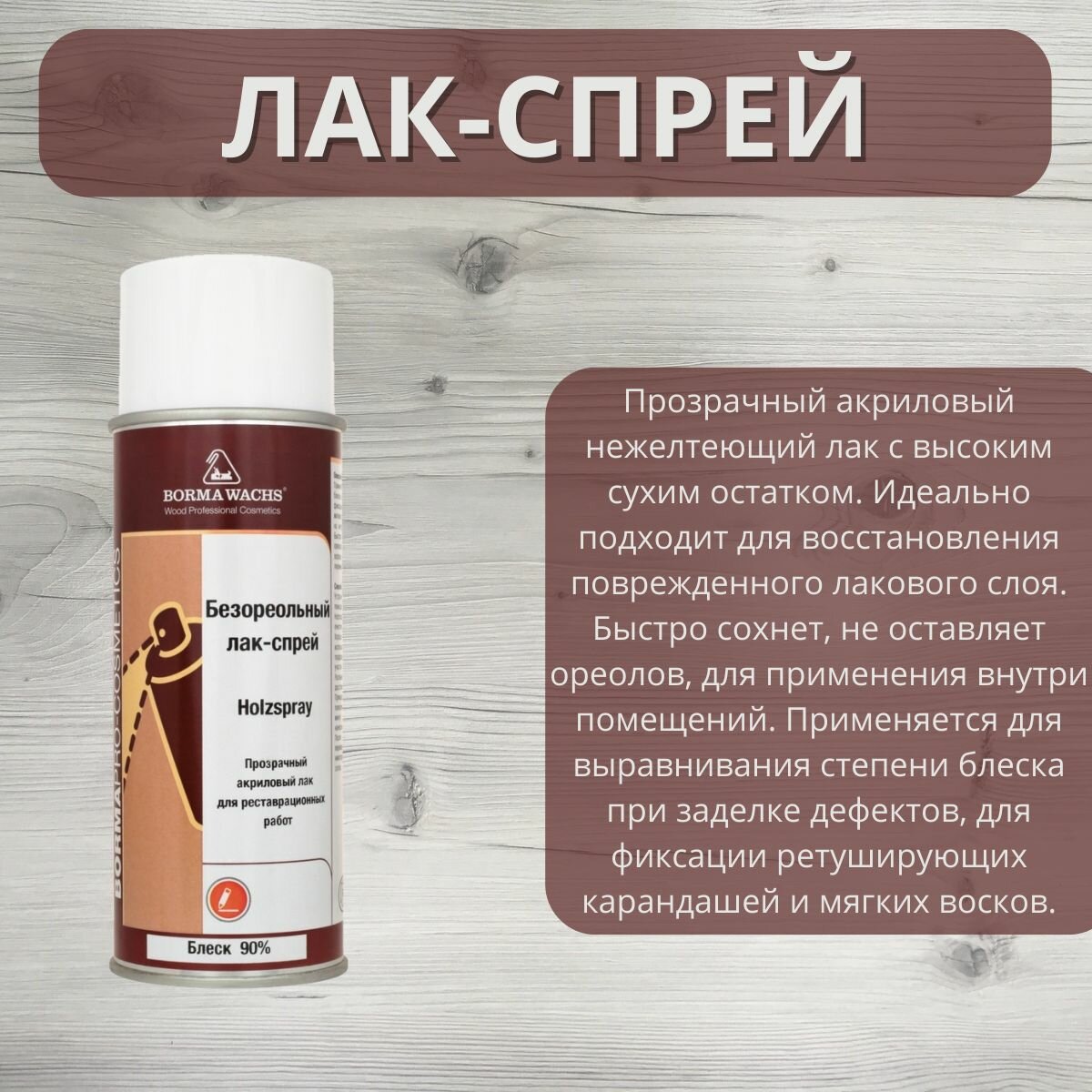 Способ применения: Хорошо встряхните баллончик перед использованием. Если поверхность окрашена, протестируйте на небольшом участке. Распыляйте лак некоторое время на расстоянии 25-30 см от поверхности. Прежде чем проводить дальнейшую обработку поверхности необходимо подождать от 5 до 15 минут в зависимости от количества нанесенного продукта. После окончания работы с баллоном, переверните его вверх дном и распылите некоторое количество материала для очистки сопла.