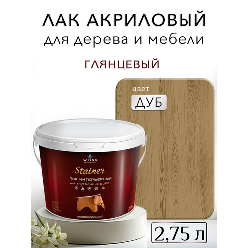 Лак для дерева акриловый дуб, глянцевый, Weiss natural product, без запаха, самовыравнивающийся, 2.75л: сравнение цен, характеристики, фото, актуальное наличие и цены.