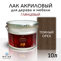 Купить Лак для дерева акриловый темный орех, глянцевый, Weiss natural product, без запаха, самовыравнивающийся, 10л с доставкой по всей России.