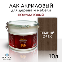 Купить Лак для дерева акриловый темный орех, полуматовый, Weiss natural product, без запаха, самовыравнивающийся, 10л с доставкой по всей России.