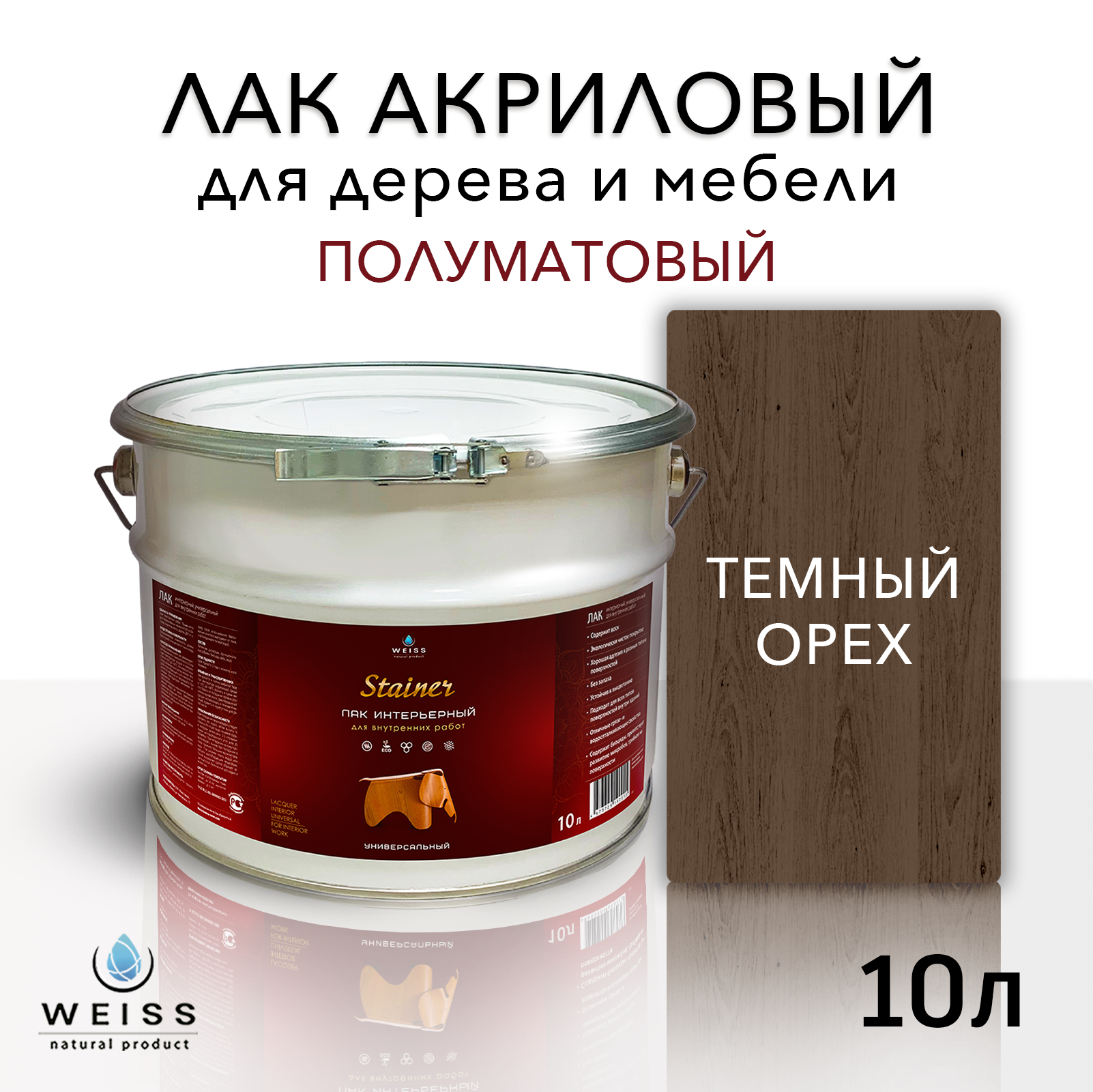 Лак для дерева акриловый темный орех, полуматовый, Weiss natural product, без запаха, самовыравнивающийся, 10л: сравнение цен, характеристики, фото, актуальное наличие и цены.