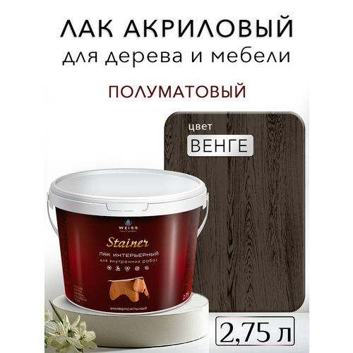 Лак интерьерный полуматовый, с воском Stainer, для любых типов поверхностей, без запаха, на водной основе, колеруемый, содержит антисептик.
