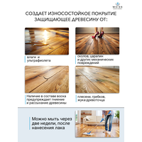 Лак для дерева и паркета полуматовый Weiss natural product – это идеальное решение для придания вашим деревянным поверхностям блеска и защиты. Акриловая формула лака обеспечивает прочное и долговечное покрытие, которое не желтеет со временем. Благодаря отсутствию запаха, его можно использовать даже в детских комнатах. Лак готов к применению, быстро сохнет (межслойная сушка всего 6 часов) и подходит для обработки различных деревянных поверхностей, таких как мебель, полы и другие изделия. Его полуматовая текстура подчеркнет естественную красоту древесины, придав ей элегантный и ухоженный вид.
