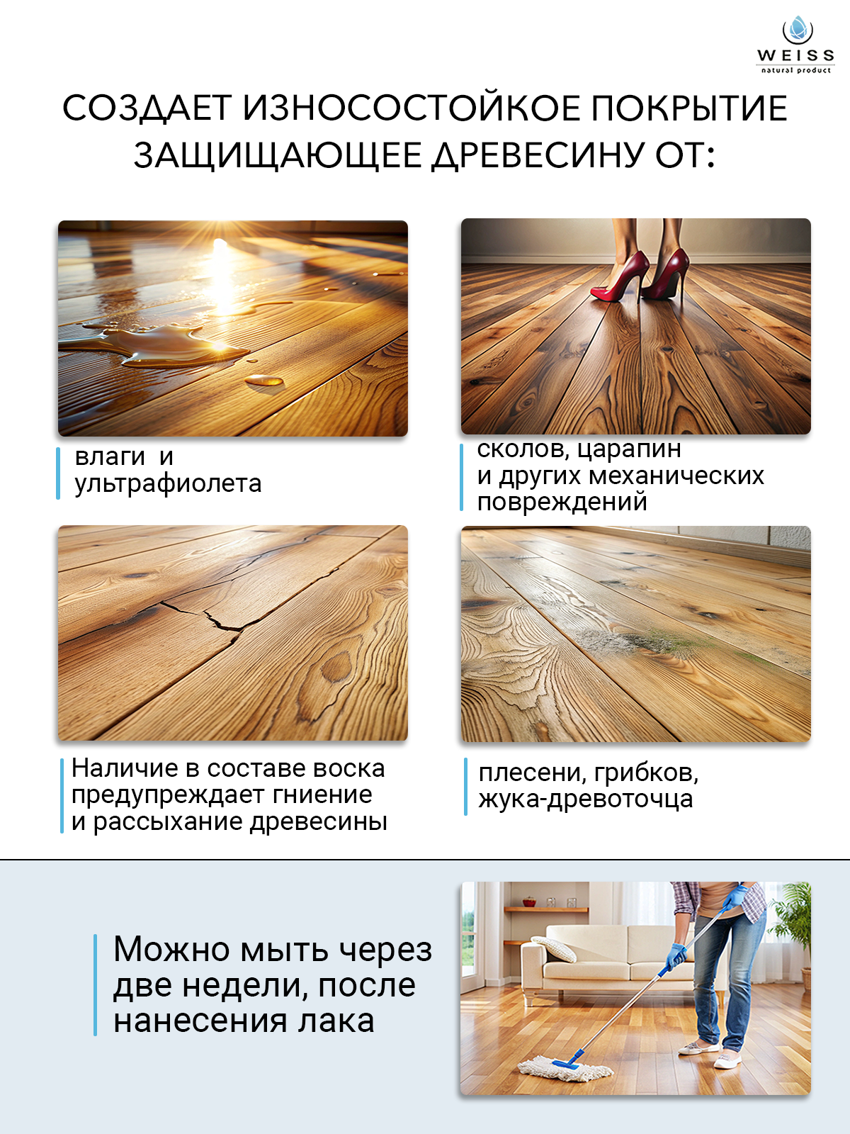 Купить Лак для дерева Weiss Natural Product, акриловый, бесцветный, полуматовый с доставкой по всей России. Лак для дерева Weiss Natural Product, акриловый, бесцветный, полуматовый: сравнение цен, характеристики, фото, актуальное наличие и цены.