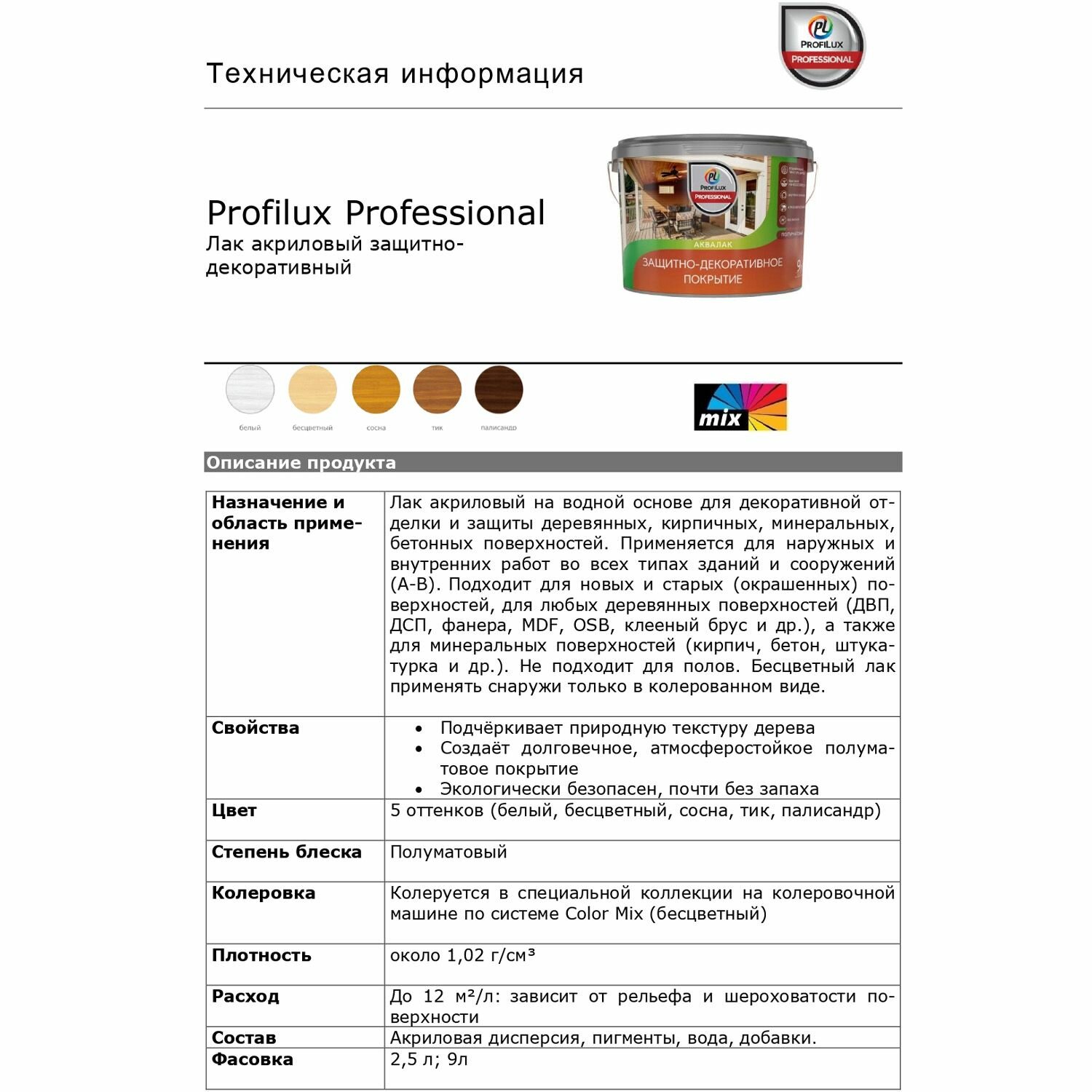 Лак для деревянных панелей акриловый защитно-декоративный Profilux Professional бесцветный 2,5 л: сравнение цен, характеристики, фото, актуальное наличие и цены.