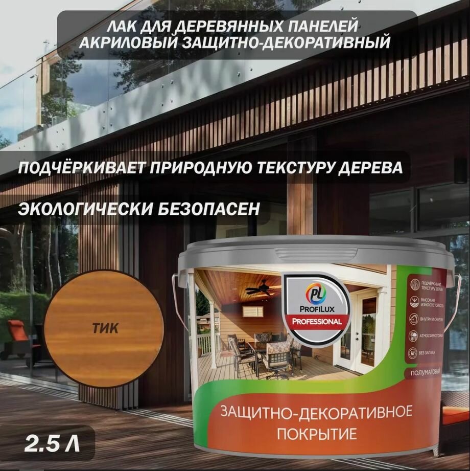 Лак для деревянных панелей акриловый защитно-декоративный Profilux Professional тик 2,5 л: сравнение цен, характеристики, фото, актуальное наличие и цены.