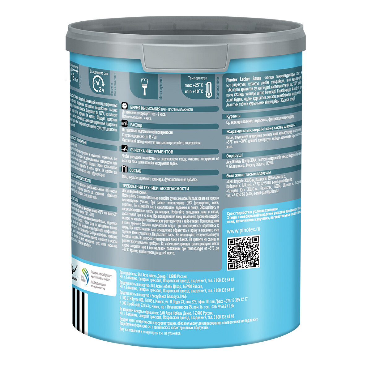 Лак для бань и саун на водной основе Pinotex Lacker Sauna 20 полуматовый 1 л.: сравнение цен, характеристики, фото, актуальное наличие и цены.