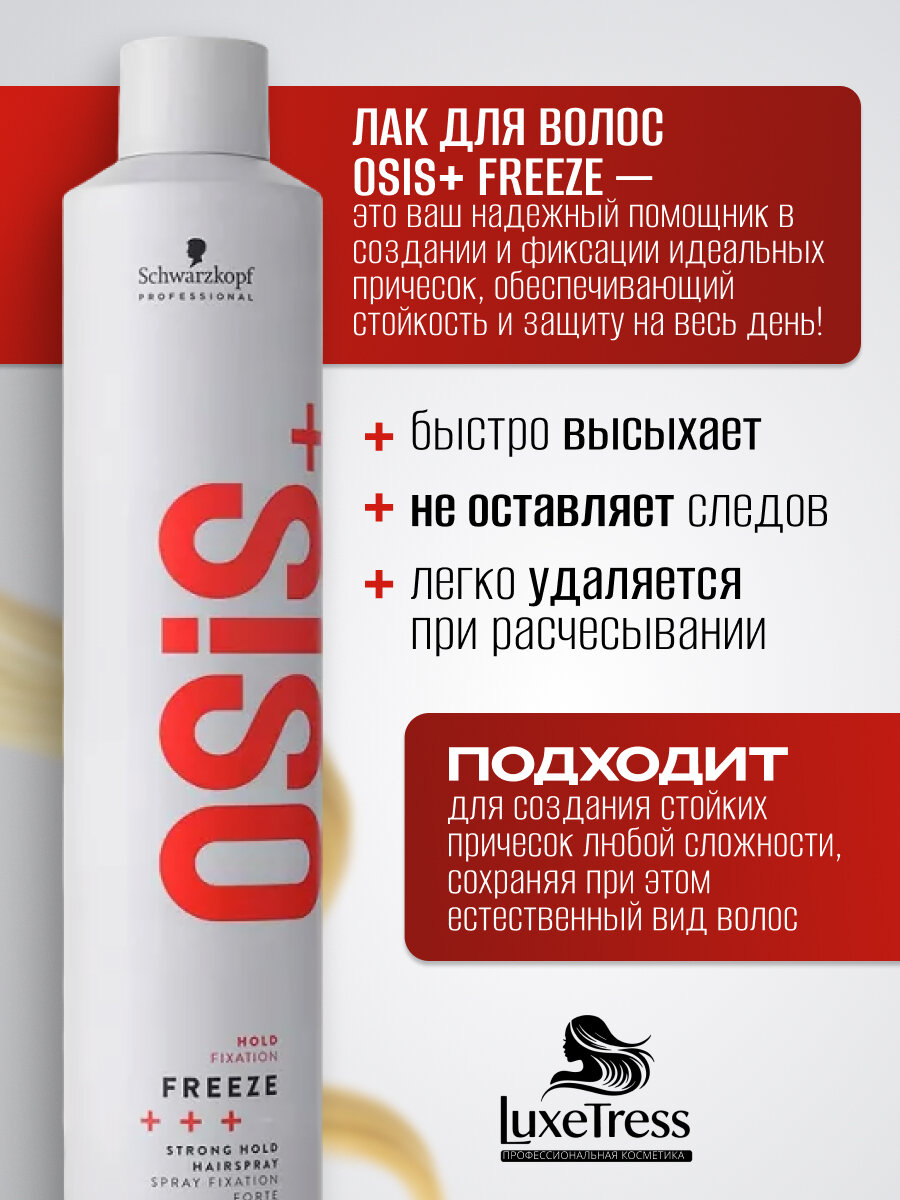 Лак для волос сильной фиксации Osis Freeze Schwarzkopf предназначен для профессиональной длительной и сильной фиксации волос.
