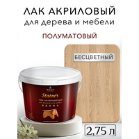 Лак интерьерный полуматовый, с воском Stainer, для любых типов поверхностей, без запаха, на водной основе, колеруемый, содержит антисептик.