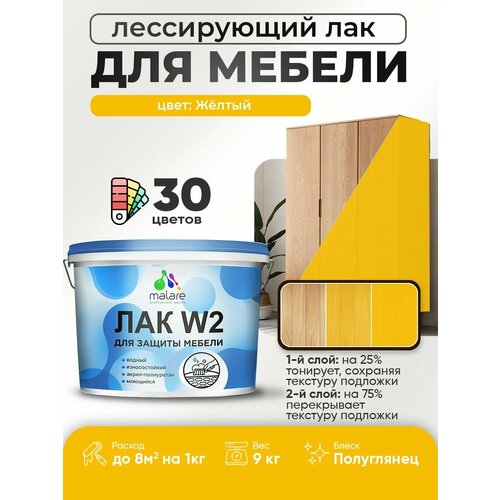 Лак колерованный тонирующий лак для мебели Malare W2 для кухонных фасадов, для дерева и минеральных поверхностей, акриловый быстросохнущий без запаха, полуглянцевый, желтый, 9 кг.: сравнение цен, характеристики, фото, актуальное наличие и цены.