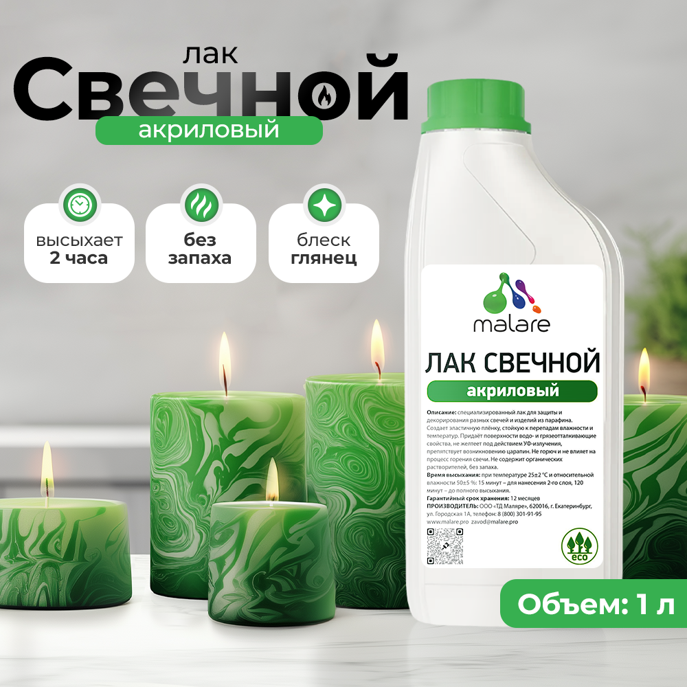 Лак Malare Professional свечной для парафиновых и восковых изделий, защитный, универсальный, глянцевый, 1 л.: сравнение цен, характеристики, фото, актуальное наличие и цены.