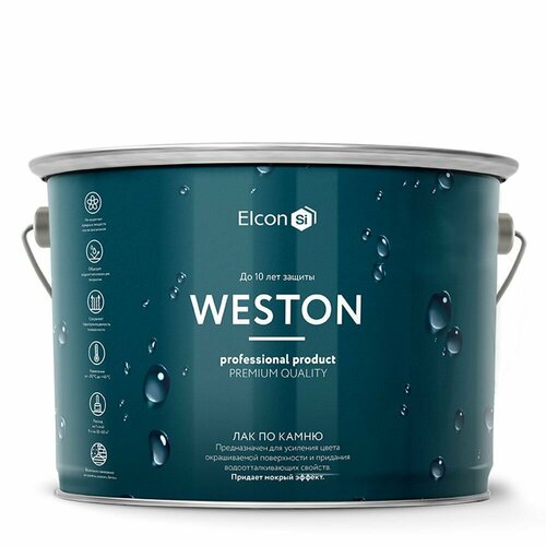 Лак Elcon Weston с эффектом «мокрого камня» предназначен для защитно-декоративной окраски искусственного и натурального камня внутри и снаружи помещений. Elcon Weston образует уникальное водоотталкивающее паропроницаемое покрытие. Уникальные свойства лака обусловлены высоким содержанием силиконовых смол в составе. Лак увеличивает атмосферо- и влагостойкость обрабатываемых материалов, предотвращает растрескивание материалов, появление плесени, высолов.