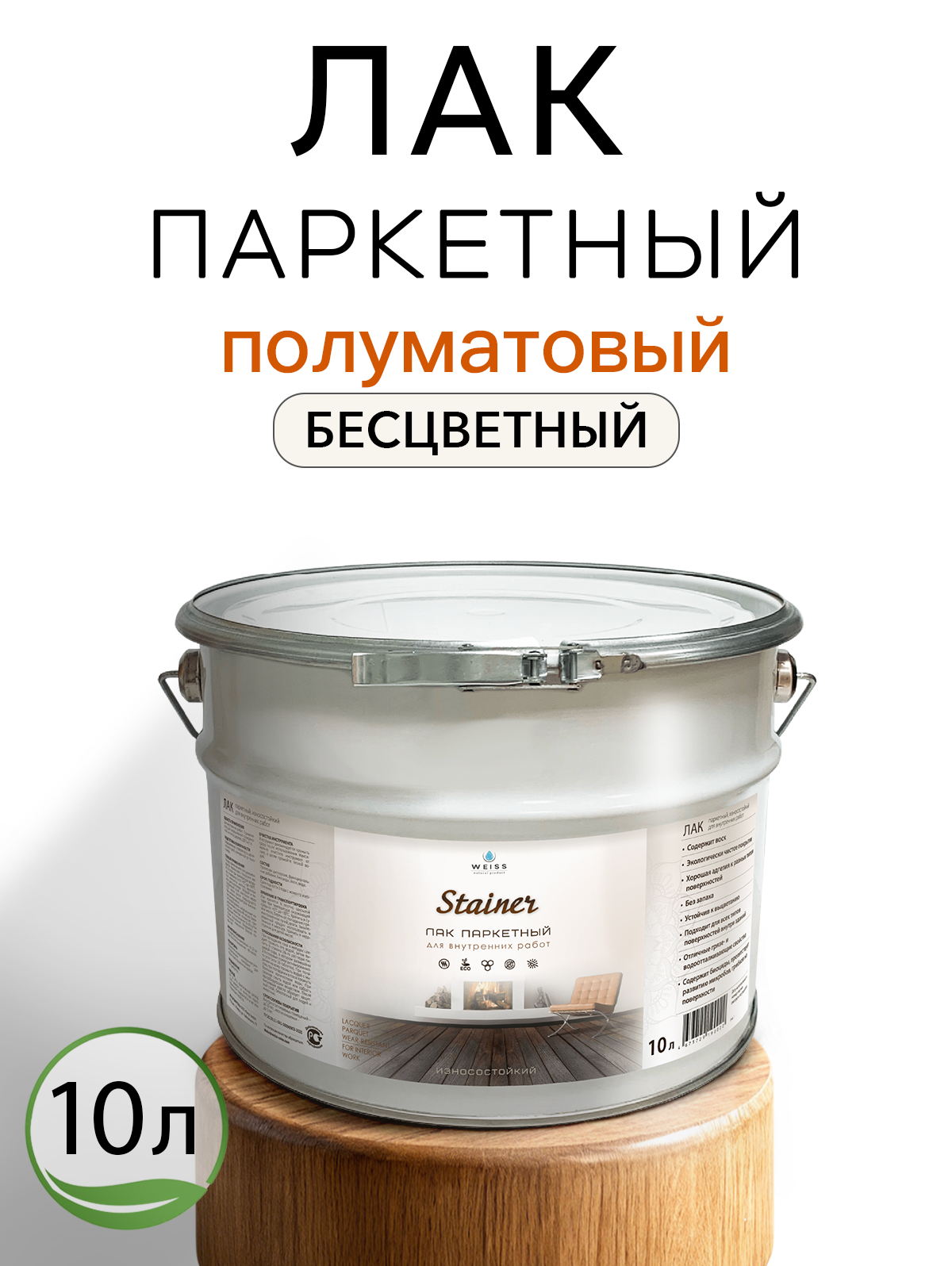 Лак строительный паркетный бесцветный полуматовый, для пола, для паркета, для мебели, для дерева Weiss natural product без запаха самовыравнивающийся 10л: сравнение цен, характеристики, фото, актуальное наличие и цены.