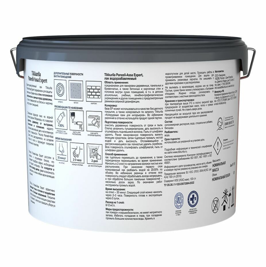 Купить Лак Tikkurila Paneeli Assa Expert EP для стен и потолков акриловый, полуматовый 9л с доставкой по всей России.