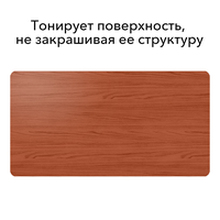 Цветной лак создает тон под ценные породы древесины, напоминает их структуру, не закрашивает дерево, а лишь тонирует его.